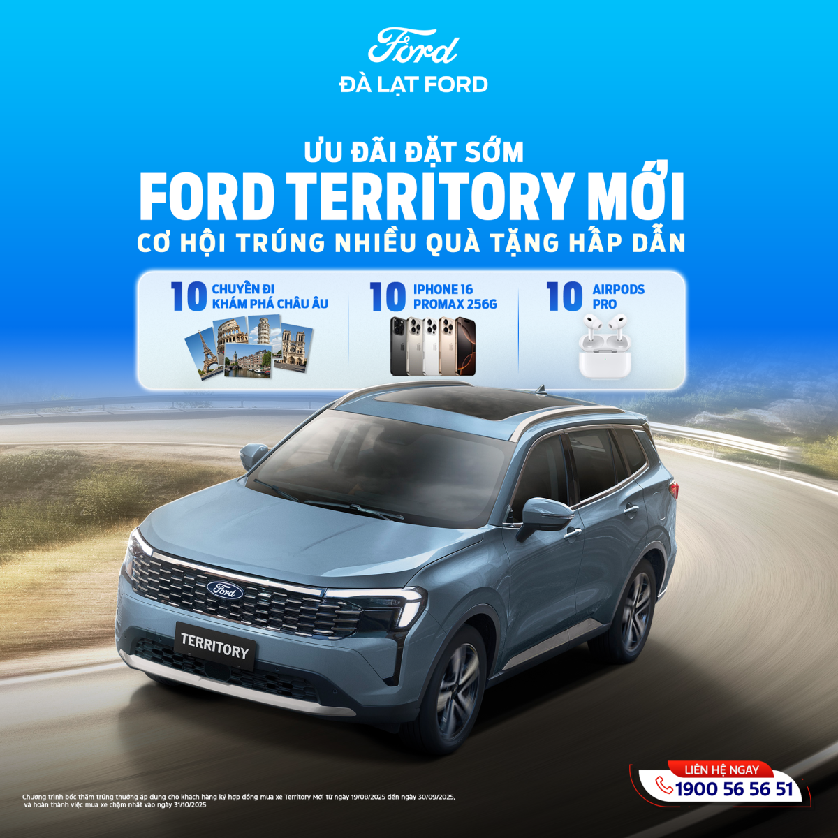 Trở thành những khách hàng tiên phong sở hữu Ford Territory Facelift 2025 tại Đà Lạt Ford và nhận ngay cơ hội trúng thưởng những phần quà giá trị: