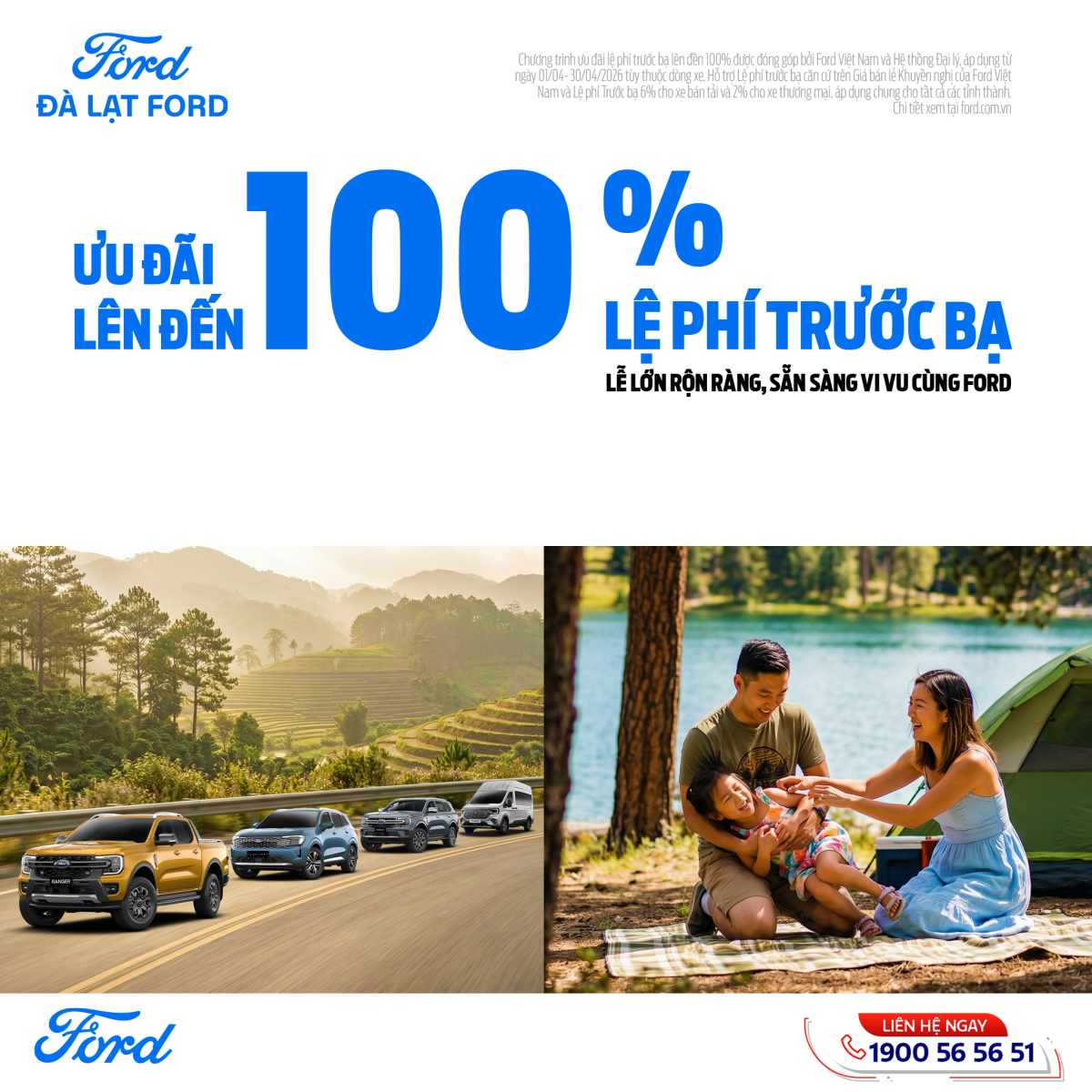Kỳ nghỉ lễ dài ngày đang đến gần, đây là thời điểm vàng để bạn và gia đình thực hiện những chuyến hành trình "đổi gió", khám phá những vùng đất mới. Để hành trình thêm trọn vẹn và tiết kiệm, Đà Lạt Ford hân hạnh mang đến chương trình khuyến mãi lớn nhất trong năm: "Lễ lớn rộn ràng, sẵn sàng vi vu cùng Ford".