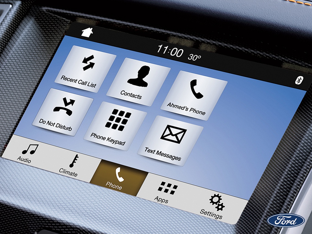 Ở giữa bảng điều khiển là màn hình cảm ứng 8 inch thay cho màn hình 3,5 icnh đơn sắc với hệ thống giải trí SYNC thế hệ thứ 3 tích hợp điều khiển giọng nói và các kết nối Android Auto/Apple CarPlay. Ở Ranger Wildtrak 2020, hệ thống này đã được nâng cấp lên 3.4, bổ sung cổng USB trên gương chiếu hậu nhằm kết nối với camera hành trình dễ dàng hơn.